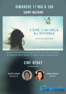 J’ai la joie d’être invitée par Valérie Seguin pour un moment de partage autour de la médiumnité et de la communication avec les êtres chers disparus, à l’occasion du ciné-débat du film « L’âme, l’au-delà